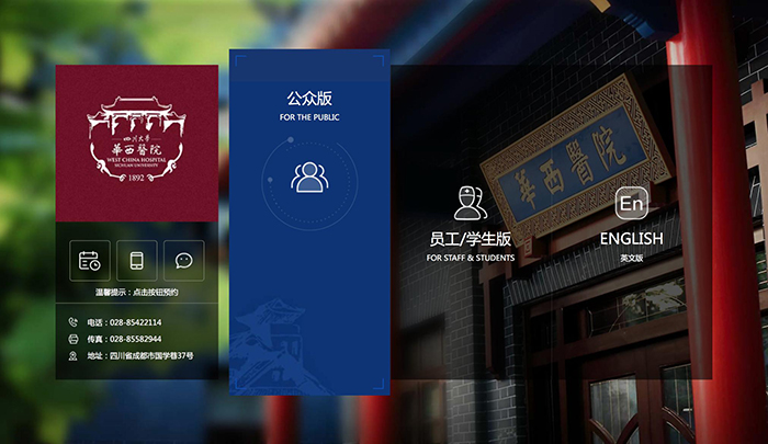 網站設計靈感源于華西醫院院訓“厚德精業、求實創新”,取“厚”和“新”,兩字對比,展現華西風采,厚代表華西百年厚重歷史和醫學功底,新代表華西科學技術及創新精神。網站著重在百年華西欄目去設計厚重感,穿插傳統紋樣元素體現百年華西的歷史底蘊。全站板塊化排版設計,采用不規則的內容布局,整體風格上體現新的特性,而功能上與his系統對接,實現預約掛號,醫生出停診等信息查詢。極大提升了患者及瀏覽者的便捷體驗。