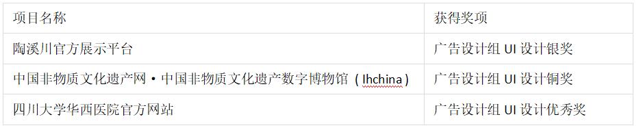 2020年9月8日,第20屆IAI國際廣告獎新鮮出爐。在備受關注的廣告設計組UI設計獎中,由分形科技設計的陶溪川官方展示平臺、中國非物質文化遺產網·中國非物質文化遺產數字博物館(Ihchina)、四川大學華西醫院官方網站,3個UI設計作品在一眾候選名單中“脫穎而出”,分別獲得廣告設計組UI設計銀獎、廣告設計組UI設計銅獎、廣告設計組UI設計優秀獎。